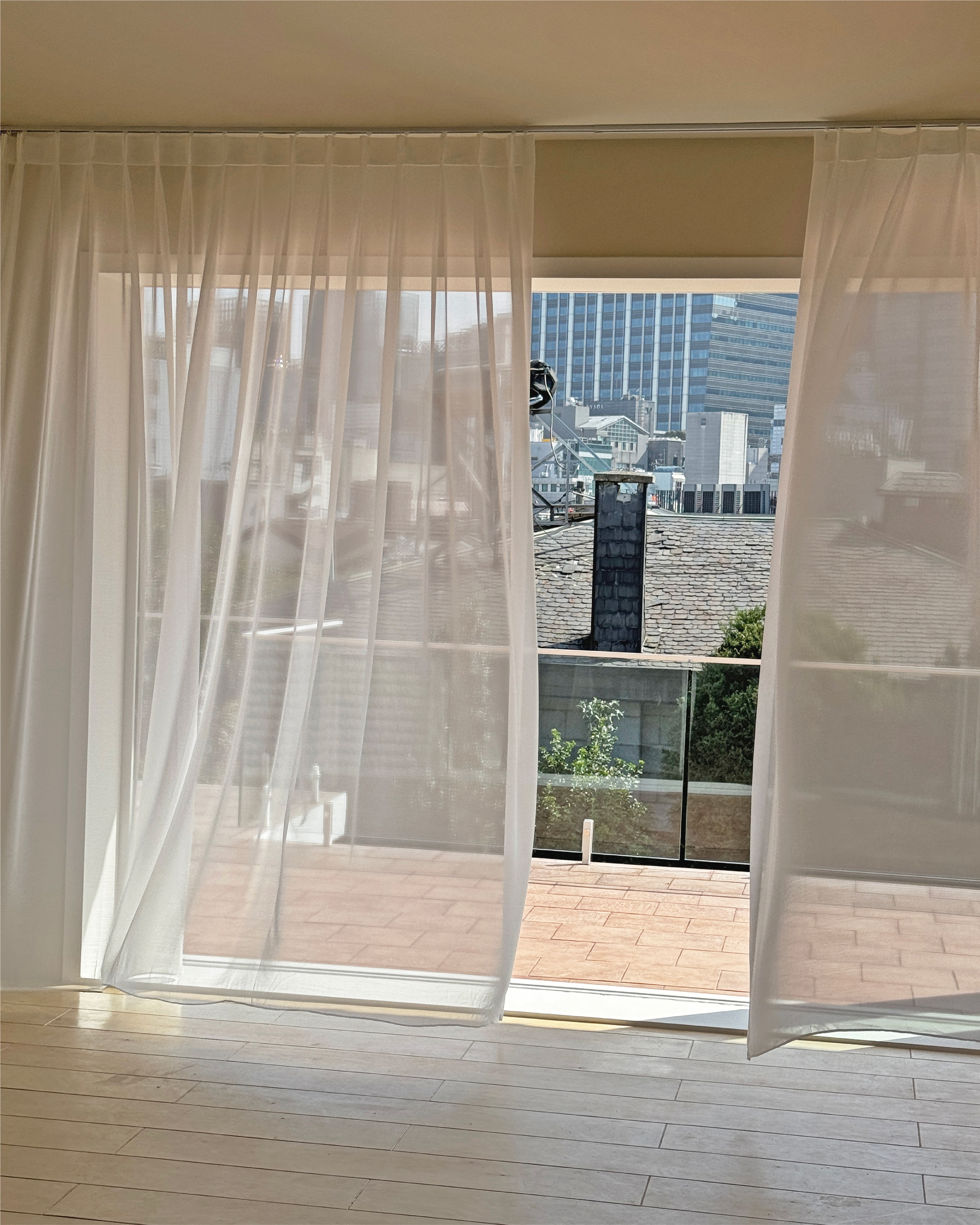 클리어 쉬폰 커튼의 시공 시 이미지입니다.